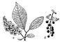 Черёмуха обыкновенная: а — ветка с цветками; б — ветка с плодами.