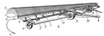 Рис. 1. Поперечные тракторные грабли: 1 — грабельный брус; 2 — правая рама; 3 — механизм подъёма; 4 — колесо правой секции; 5 — подшипники грабельного бруса; 6 — очистительные прутки; 7 — зубья грабель; 8 — сница; 9 — автомат; 10 — рама средней секции; 11 — колесо средней секции; 12 — вал подъёма; а — пружинный зуб; б — грабли.
