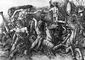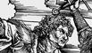 Обрезная гравюра на дереве (А. Дюрер. «Четыре всадника». Лист из серии «Апокалипсис». 1498. Фрагмент).