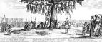 Ж. Калло. «Казнь через повешение». Офорт из цикла «Большие бедствия войны». 1633.