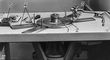 Рис. 2а. Гранильный станок для огранки алмазов в бриллианты (1 — шпиндель станка; 2 — чугунная планшайба; 3 — квадрант с делительной головкой; 4 — направляющая со стойкой; 5 — цанговые зажимы, оправки для обрабатываемого изделия).