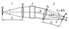 Рис. 3. Принципиальная оптическая схема спектрального прибора с пространственным разделением длин волн с помощью угловой дисперсии: 1 — коллиматор с входной щелью Щ и объективом O1, фокусное расстояние которого C1; 2 — диспергирующий элемент, обладающий угловой дисперсией Dj/Dl; 3 — фокусирующая система (камера) с объективом O2, создающим в фокальной плоскости Ф изображения входной щели в излучении разных длин волн с линейной дисперсией Dx/Dl. Если в плоскости Ф установлена одна выходная щель, то прибор называется монохроматором, если несколько — полихроматором, если фоточувствительный слой (или глаз) — спектрографом (или спектроскопом).