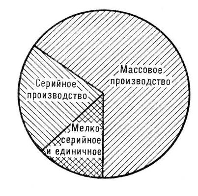 Рис. 2. Удельный вес продукции по типам производства на станкостроительном заводе.
