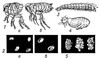 1 — áëîõè: à — ÷åëîâå÷åñêàÿ, á — êðûñèíàÿ; 2 — ÿéöà áëîõ: à — þæíîé êðûñèíîé; á — ÷åëîâå÷åñêîé; 3 — ëè÷èíêà áëîõè (âèä ñáîêó); 4 — êóêîëêà áëîõè; 5 — êîêîíû ñ êóêîëêàìè áëîõ (ñíàðóæè êðèñòàëë ïåñ÷èíêè).