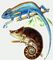 Õàìåëåîíû. Ââåðõó — äâóõïîëîñíûé õàìåëåîí; âíèçó — êîðîòêîðîãèé õàìåëåîí.