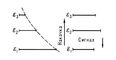 Рис. 3. Метод трех уровней: а — населённости уровней при отсутствии накачки; б — мощное вспомогательное излучение накачки уравнивает населенности уровней Е1 и Е3, создавая тем самым инверсию населенностей уровня Е2 по отношению к уровню Е1.
