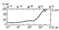 Пропускание земной атмосферы в области рентгеновского и гамма-излучения. По оси ординат отложена высота, до которой проникает половина падающего излучения.