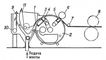 Рис. 5. Схема бумагоделательной машины типа ротоформер: 1 — напорный ящик; 2 — вакуум-формующий цилиндр; 3,4,5 — отсасывающие камеры; 6 — прижимной валик; 7 — бумаговедущий валик; 8 — пресс; 9 — устройство для регулирования уровня массы; 10 — труба для отвода перелива массы; 11 — регулирующее устройство.