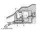 Рис. 2. Каптаж безнапорного источника: 1 — отверстие для воды; 2 — ключевое отделение; 3 — приёмный клапан; 4 — водослив; 5 — грязевая труба; 6 — задвижка; 7 — лаз для осмотра и очистки камеры.