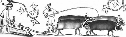 Пахота. Миниатюра из английской рукописи 14 в.