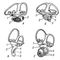 Лабиринты позвоночных: А — рыбы; Б — черепахи; В — птицы; Г — млекопитающего; 1 — утрикулюс; 2 — саккулюс; 3 — лагена; 4 — слуховой сосочек; 5 — основная мембрана; 6 — улитка.