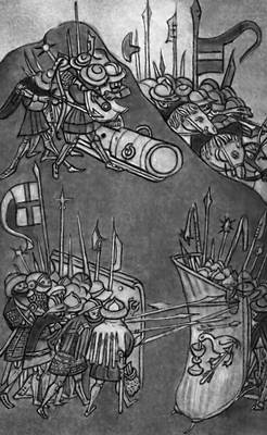Бой гуситов с крестоносцами. Рисунок около 1450.