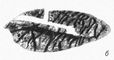 Рис. 1, б. Топограмма по Шульцу алюминииевого монокристалла. Тёмные и светлые полосы на топограмме соответствуют границам блоков в кристалле. Их ширина и цвет определяются величиной и направлением взаимного разворота блоков в кристалле.