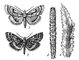 Стеблевой мотылек: 1 — самка; 2 — самец; 3 — гусеница; 4 — яйца на листе конопли.