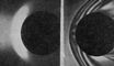 Ðèñ. 3. Ôîòîãðàôèè óäàðíîé âîëíû ïåðåä ñôåðîé äèàìåòðà d == 15 ìì: ñëåâà — â ðàçðåæåííîì ãàçå; ñïðàâà — â ñïëîøíîé ñðåäå.