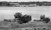 Чечено-Ингушская АССР. Уборка ячменя в совхозе «Дружба» Гудермесского района. На заднем плане — город Гудермес.