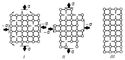Рис. 1. Самодиффузионная пластичность: I — кристалл с вакансиями в первый момент действия напряжений s (тонкими стрелками показаны направления перемещений атомов); II — деформация вследствие потока вакансий под действием напряжений; III — конечная деформация кристалла.