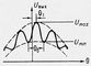 Рис. 2. Напряжение на выходе радиоинтерферометра при наблюдении протяженного источника (< 1); 0 = l/D — период лепестков, 1 — фаза интерференционной картины. Пунктиром обозначены диаграммы направленности отдельных антенн.