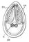 Схема строения споры миксоспоридии: ам — амёбоидный зародыш; я — ядра зародыша; пк — полярная капсула; сп — спиральная нить.