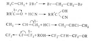В соединениях с двумя Д. с., разделёнными одной простой связью, имеет место сопряжение p-связей и образование единого p-электронного облака, лабильность которого проявляется вдоль всей цепи (рис. 2, слева). Следствием такого сопряжения является способность к реакциям 1,4-присоединения:
