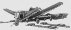 Картофелесортировальный пункт: 1 — приёмный бункер; 2 — выгрузные (переборочные) транспортёры; 3 — картофелесортировка; 4 — двигатель; 5 — переносные рельсы; 6 — рама; 7 — тележка для контейнеров с отсортированными клубнями.