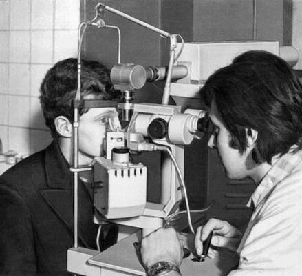 Исследование больного с применением лазера в НИИ глазных болезней Министерства здравоохранения СССР.
