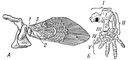 Рис. 2. Преобразование передней конечности при переходе к наземному образу жизни: А — кистепёрая рыба; Б — Древнейшее наземное позвоночное — стегоцефал; 1 — плечевая кость; 2 — лучевая кость; 3 — локтевая кость; I — плечо; II — предплечье; III — запястье; IV — пясть; V — фаланги пальцев.
