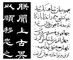 Слева — фрагмент китайской рукописи шрифтом «лишу». 8 в. Каллиграф император Сюань-цзун. Справа — фрагмент иранской рукописи шрифтом «насхи» (поэма Фирдоуси «Шахнаме»). 1333. Публичная библиотека им. М. Е. Салтыкова-Щедрина. Ленинград.