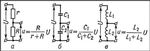 Рис. 1. Схемы низковольтных делителей напряжения: а — омический; б — ёмкостный; в — индуктивный; u, U — напряжения; r, R — сопротивления; C1 С2 — ёмкости; L1, L2 — индуктивности.