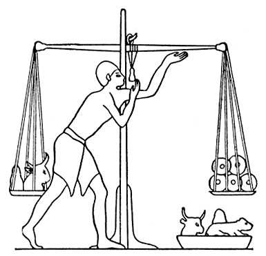 Рис. 1. Древнеегипетские рычажные весы (гирям придавалась форма животных).