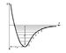 Рис. 1. Зависимость потенциальной энергии U двухатомной молекулы (или отдельной химической связи) от межатомного расстояния r (r0 — равновесное расстояние, D — энергия диссоциации, 0, 1, 2, ... — уровни энергии колебаний).