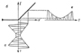 Рис. 3. а — амплитудно-модулированное колебание на входе детектора; б — вольтамперная характеристика детектора; в — колебания тока на выходе детектора.