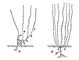Рис. 3б. Нарастание и длительность жизни скелетных осей у различных жизненных форм: в — полукустарничек; г — многолетняя трава. Точками и пунктиром обозначены отмирающие части побегов. Римские цифры — основные структурные оси, арабские — годичные приросты.