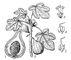 Инжир: 1 — разрез соцветия; 2 — ветка с плодами; 3 — тычиночный цветок; 4, 5 — пестичные цветки.
