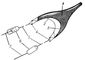 Общий вид рыболовного трала:1 — сетный мешок трала; 2 и 3 — верхняя и нижняя подборы; 4 — клячовки; 5 — кабели; 6 — распорные доски; 7 — ваеры.