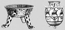 Керамические изделия. Слева — ваза с полихромной росписью из Оахаки. Терракота. Культура сапотеков. Собрание К. Ставенхагена. Справа — керамический сосуд из Толимана (штат Герреро). Национальный музей народных искусств и ремёсел. Мехико.