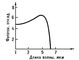 Рис. 2. Характерный вид спектра собственной фотопроводимости. Резкий спад в длинноволновой области отвечает т. н. краю поглощения — выключению собственного поглощения, когда энергия фотона становится меньше ширины запрещенной зоны; плавный спад в области малых длин волн обусловлен поглощением света у поверхности.