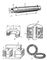 Катушки индуктивности: а — цилиндрическая однослойная; б — тороидальная многослойная; в — с цилиндрическим сердечником; г — с П-образным сердечником; д — образцовая индуктивность на керамическом тороиде; 1 — намотка (провод); 2 — каркас; 3 — сердечник; h — длина намотки; d — внутренний диаметр намотки; D — наружный диаметр намотки.