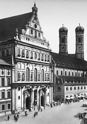 Церковь Санкт-Михаэль-кирхе. 1583—97. Архитектор Ф. Сустрис. На заднем плане — церковь Фрауэнкирхе (1466—92, архитектор Й. Гангхофер).