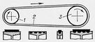 Ñõåìà ðåìåííîé ïåðåäà÷è è ñå÷åíèÿ ðåìíåé: à — ïëîñêîðåìåííîé; á — êëèíîðåìåííîé; â — êðóãëîðåìåííîé; ã — ïîëèêëèíîâîé; 1 è 3 — âåäóùèé è âåäîìûé øêèâû; 2 — ðåìåíü.