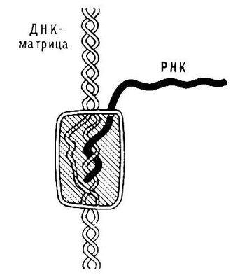 Схема процесса транскрипции ДНК РНК-полимеразой.