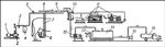 Схема доильной установки с молокопроводом: 1 — электродвигатель; 2 — вакуум-насос; 3 — вакуум-регулятор; 4 — вакуум-баллон; 5 — вакуумметр; 6 — доильный аппарат; 7 — вакуум-трубопровод; 8 — молокопровод; 9 — фильтр; 10 — охладитель; 11 — холодильная установка с насосом; 12 и 13 — молочные насосы; 14 — ёмкость для временного хранения молока; 15 — весы: 16 — молоковоз. Стрелками показано движение молока.