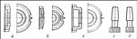Долбяки: а — тип I (дисковые прямозубые с диаметрами 75, 100, 125, 160 и 220 мм); б — тип II (дисковые косозубые с диаметром 100 мм); в — тип III (чашечные прямозубые с диаметрами 50, 75, 100 и 125 мм); г — тип IV (хвостовые прямозубые с диаметрами 25, 38 мм); д — тип V (хвостовые косозубые с диаметром 38 мм и углами наклона 15° и 23°).
