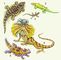 Ящерицы. 1. Лопастехвостый геккон. 2. Мадагаскарский геккон. 3. Средиземноморский геккон. 4. Плащеносная ящерица. 5. Молох.