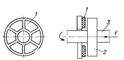 Рис. 3. Схема осевого подшипника скольжения: 1 — подушка; 2 — упорный диск; 3 — вал; F — осевая сила.