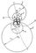 Циклоидное зацепление: 1, 2 — начальные окружности колес с радиусами r1 и r2; 3, 4 — вспомогательные окружности колёс с радиусами r’1 и r’2; ЭЭ — эпициклоида; ГГ — гипоциклоида; LPL — линия зацепления; В1Р и В2Р — участки профилей головки зубьев.
