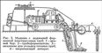 Рис. 3. Машина с подземной формовкой пластмассовых труб: 1 — цепной бар; 2 — трубоформователь; 3 — механизм для укладки готовых труб; 4 — закрывающий аппарат.