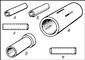 Дренажные керамические трубы: а — круглая; б — с продольной опорной плоскостью; в — со щелевыми отверстиями для приёма воды; г — фасетчатая; д — с раструбами: е — с выступающими рёбрами.