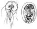 Лямблия из кишечника человека: слева — активная форма; справа — циста.