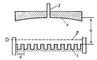 Схема конструкции оротрона: 1 — зеркало с периодической структурой; 2 — электронный поток; 3 — радиоволновод; 4 — зеркало; а — расстояние между зеркалами; d — период структуры.